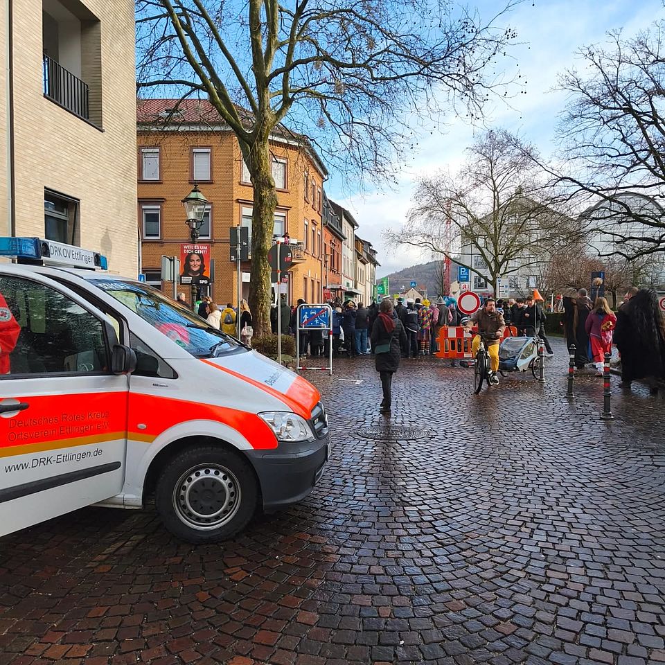 Am vergangenen Montag,16. Februar 2026, fand in Ettlingen der jährliche Rosenmontagsumzug statt. Wir waren mit insgesamt 17 Helfern vor Ort um die Narren und Närrinnen sowie die Besucher sanitätstechnisch abzusichern. Hierzu stellten wir eine Sanitätsstation im Musensaal sowie mehrere Streckenposten.